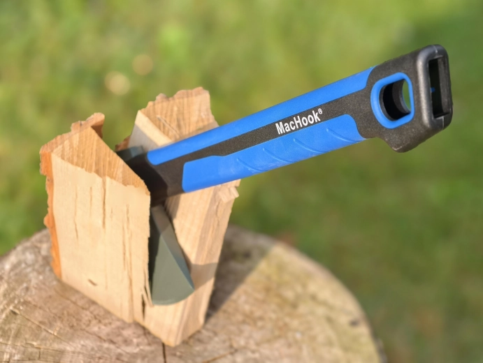 Cette hache compacte combine une tête équilibrée de 940 g avec un manche ergonomique en nylon et fibre de verre, qui amortit efficacement les chocs et réduit la fatigue des mains. Grâce à sa longueur de 45 cm, elle offre un excellent compromis entre maniabilité et force d’impact – idéale pour la préparation de copeaux, le fendage de petites bûches et les travaux de charpente.