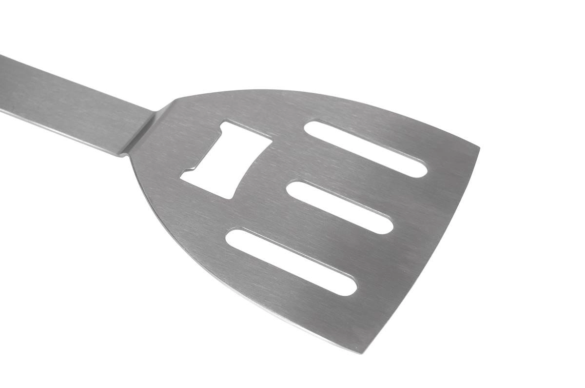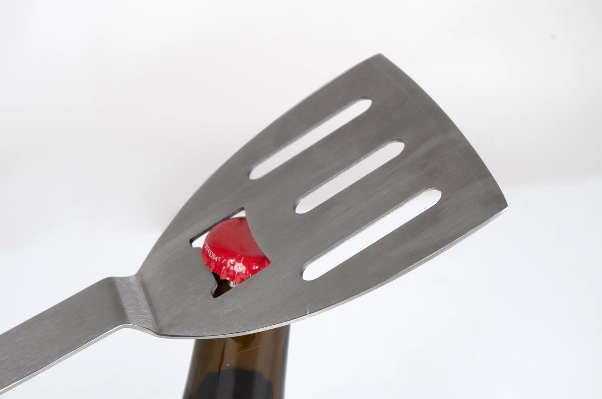 La tête ajourée aide à évacuer les graisses et le décapsuleur intégré fait toujours plaisir lors de chaque session barbecue.