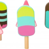 Six boules de glace pour cornets et six esquimaux colorés sur bâton. Chaque gourmandise a sa place et invite au choix et aux combinaisons.