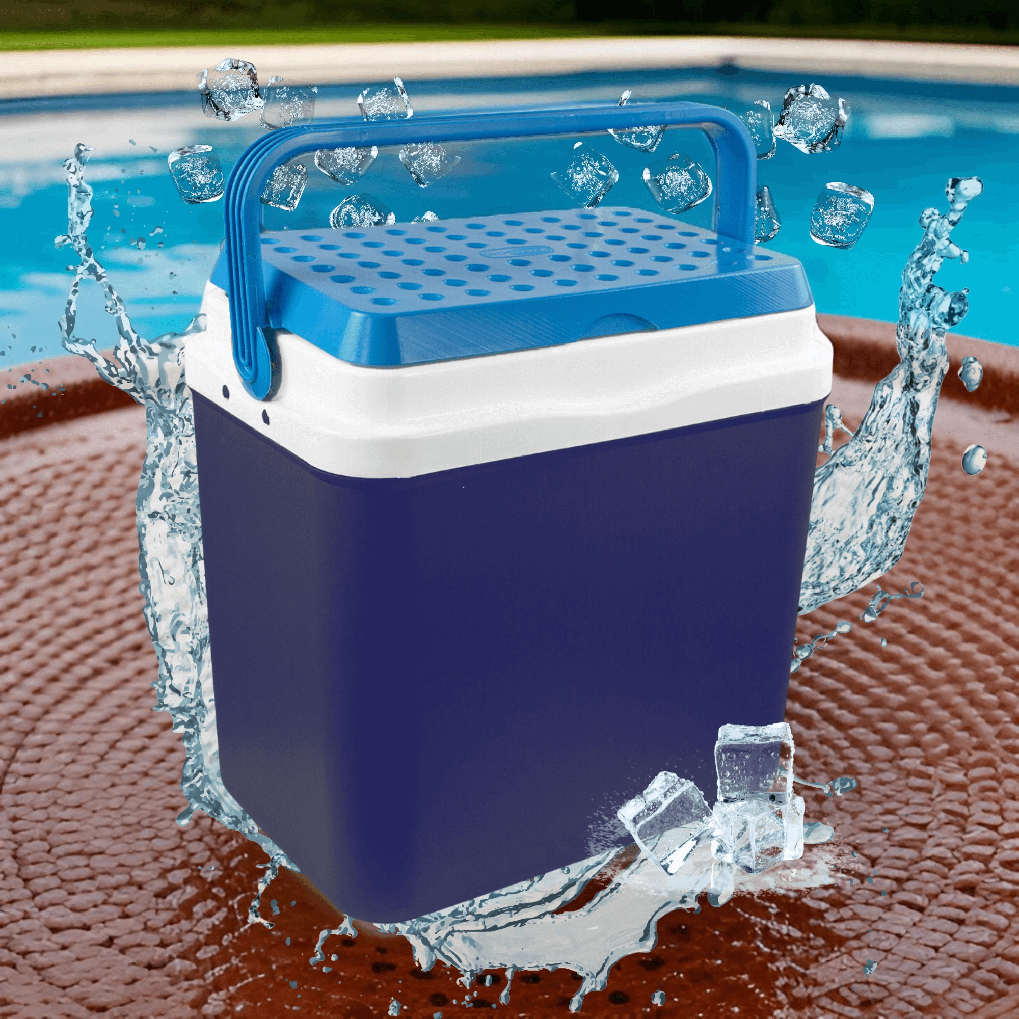 Glacière touristique KAMAI BRAVO 29,5 l, bleu avec couvercle azur et poignée