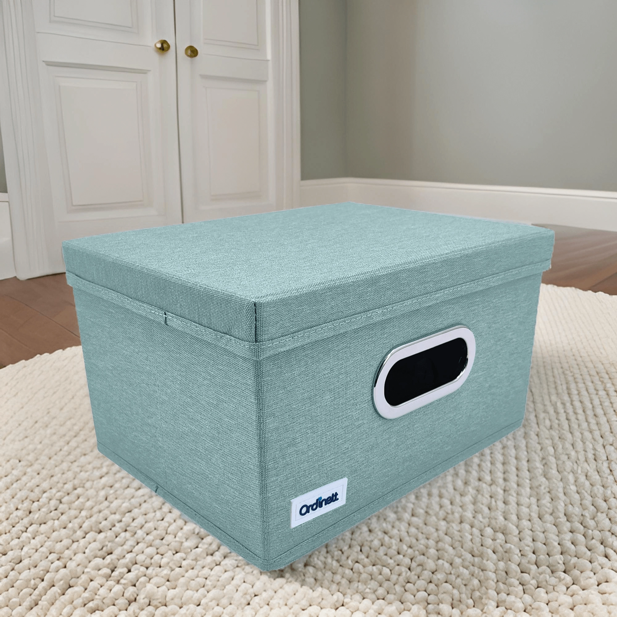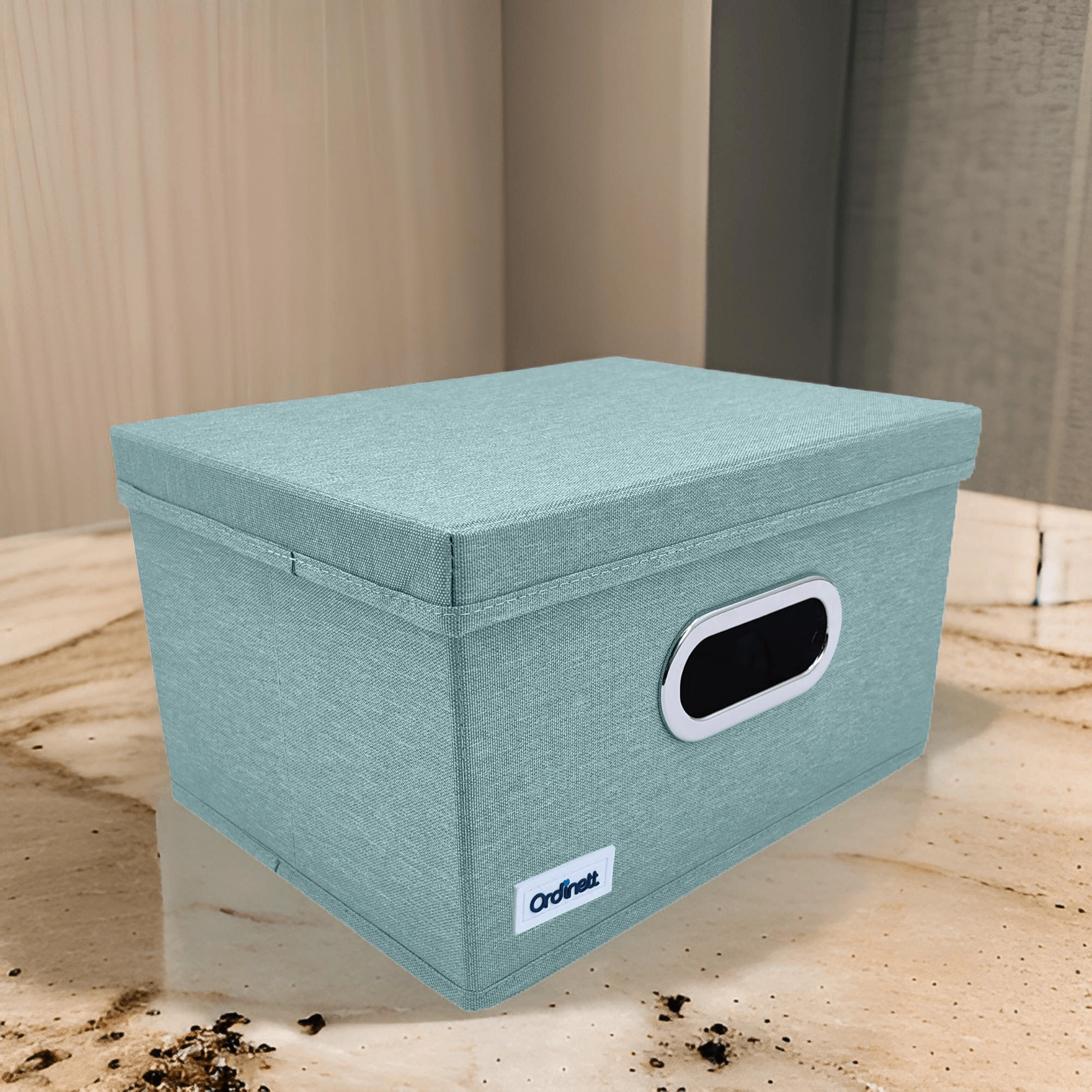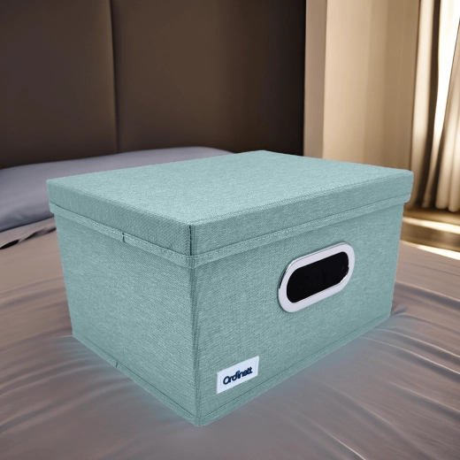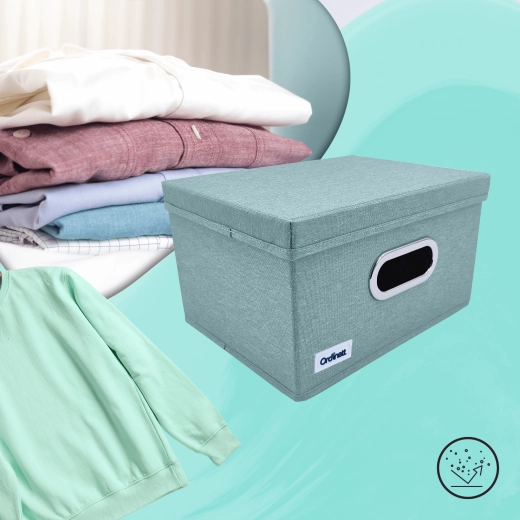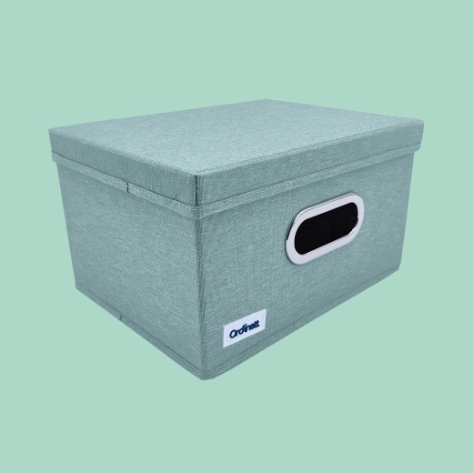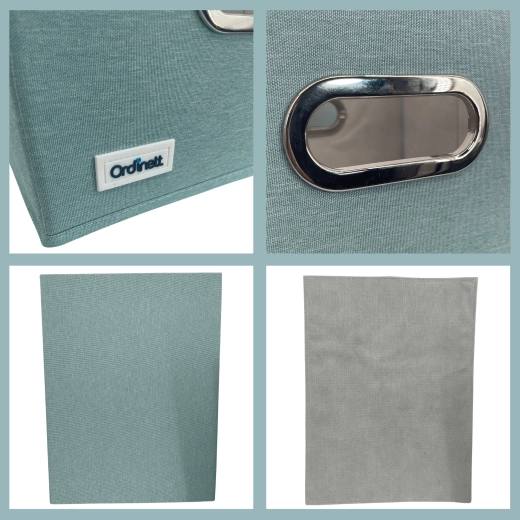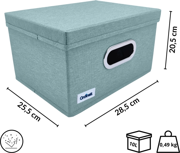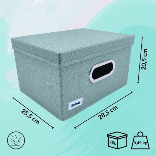 Cette boîte textile avec couvercle est idéale pour ranger de façon ordonnée le linge, les accessoires, les jouets ou les fournitures de bureau. La fenêtre ovale frontale permet de vérifier rapidement le contenu, tandis que le couvercle garde le tout propre et à l’abri. La teinte menthe élégante apporte fraîcheur et ordre à votre intérieur.