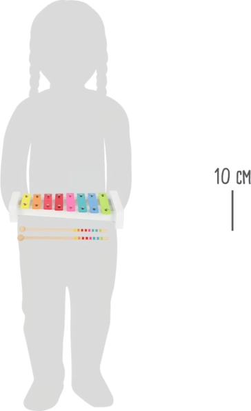 Xylophone pour enfants coloré en bois 100 % certifié FSC avec lames métalliques, offrant un son pur et beaucoup de plaisir à jouer. Favorise le développement de l’ouïe, la motricité fine et la créativité. Inclus : 2 mailloches en bois et des partitions codées par couleur pour apprendre facilement les premières mélodies. Idéal pour les enfants à partir de 18 mois.