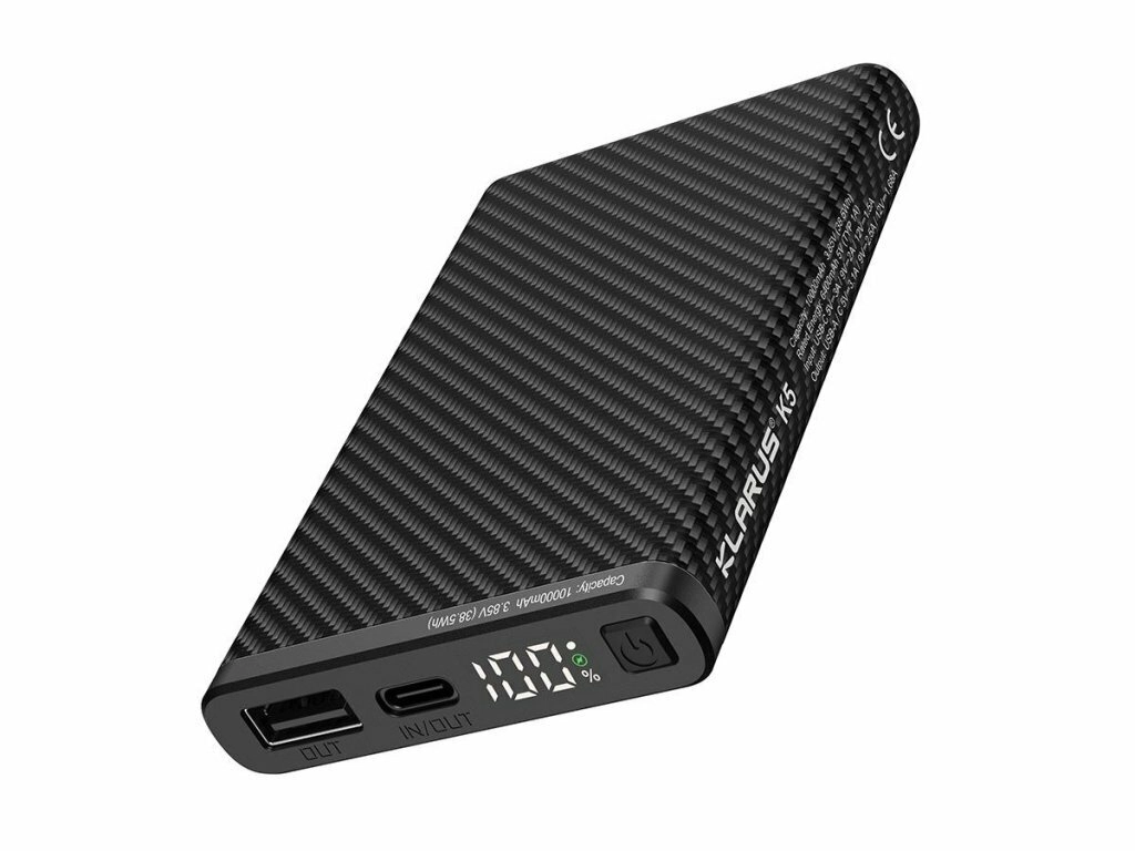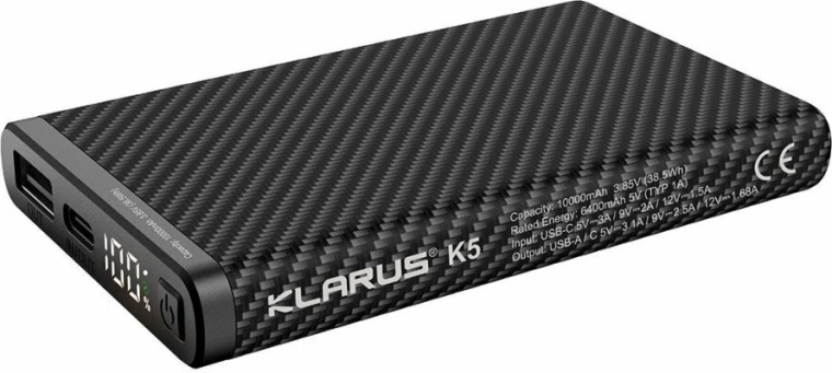 La power bank fiable et légère Klarus K5 associe une grande capacité de 10000 mAh à un format compact et une surface texturée résistante pour une prise en main sûre. Grâce à la prise en charge QC/PD 22,5 W, elle recharge les téléphones compatibles jusqu’à 50 % en 30 minutes. Son écran LED affiche en pourcentage l’énergie restante et la progression de la charge.