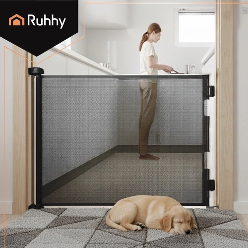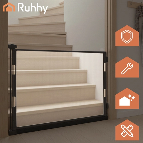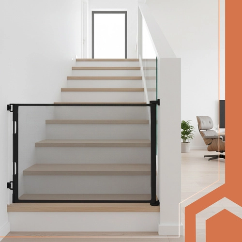 Délimitation sûre de l’espace – le rideau extensible sépare de manière fiable les escaliers, encadrements de porte ou l’accès à la terrasse et limite l’accès aux zones chaudes ou dangereuses (par ex. cheminée, chaudière). Grâce à son design moderne et discret, il s’intègre à tout intérieur.