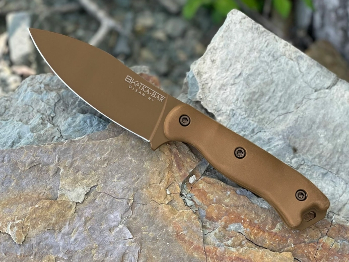 Le modèle Becker Nessmuk de la gamme KA-BAR BK&T, conçu par Ethan Becker, est un couteau fiable pour le camping, le bushcraft et les tâches quotidiennes en pleine nature. La lame fixe à tranchant lisse en acier au carbone 1095 offre une excellente tenue de coupe et un affûtage facile, tandis que le revêtement sable mat protège l’acier de la corrosion et de l’usure.