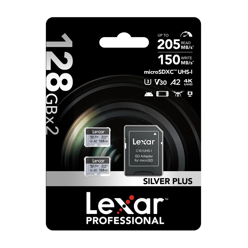 Les cartes LEXAR High-Performance Silver Plus microSDXC ont été conçues pour les utilisateurs exigeants. Des vitesses allant jusqu’à 205 Mo/s en lecture et 150 Mo/s en écriture permettent un enregistrement fluide en 4K 60 FPS, un transfert rapide de gros fichiers et un chargement vif des applications grâce à la spécification A2.