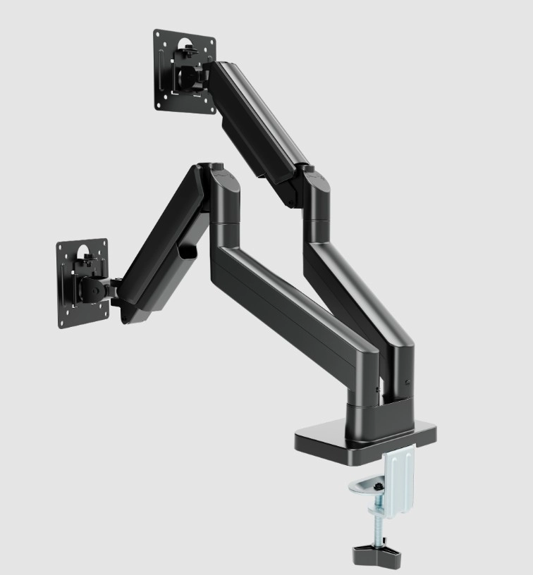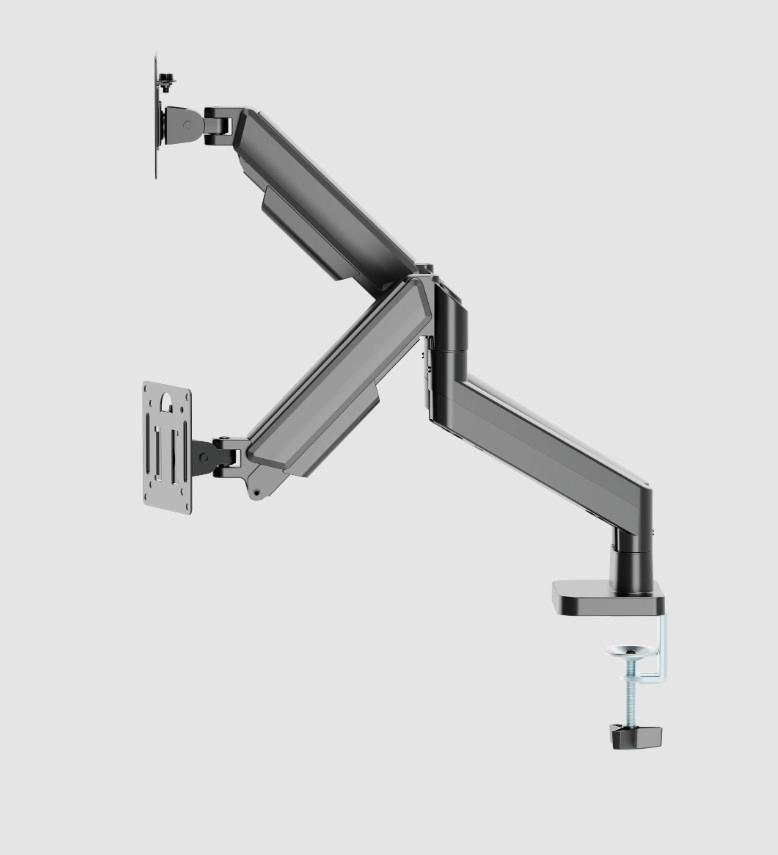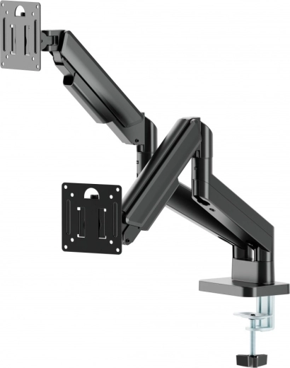Bras de bureau pour deux moniteurs 17–32" avec vérin à gaz, noir