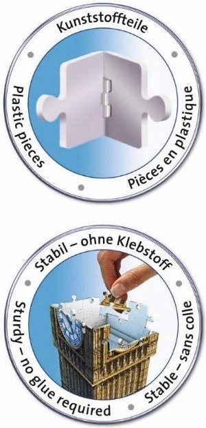 Créez un modèle détaillé de Big Ben à Londres avec ce puzzle 3D incroyable de la marque Ravensburger. Grâce aux pièces incurvées ou flexibles spéciales, qui s'emboîtent précisément, vous pouvez facilement construire un modèle fascinant de bâtiments célèbres sans besoin de colle. Chaque pièce est fabriquée en plastique solide, garantissant une stabilité exceptionnelle de la structure entière.