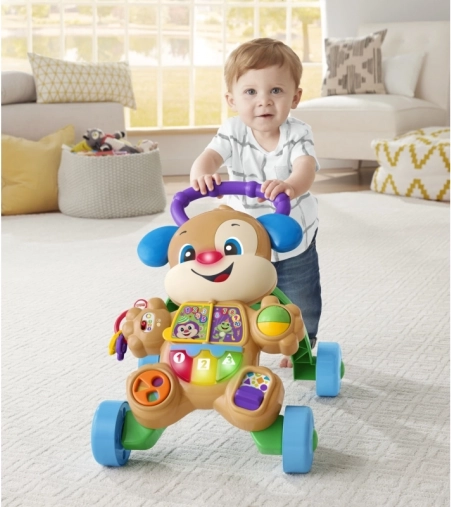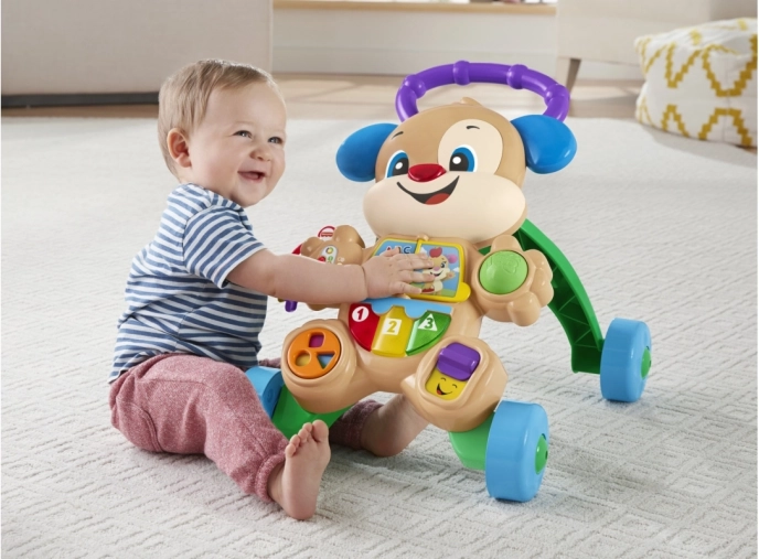Le trotteur interactif en forme d’adorable chiot est le compagnon idéal, du premier assis jusqu’aux premiers pas autonomes. Les enfants découvrent des lumières, sons et chansons qui les motivent à bouger et à apprendre. La poignée stable et les roues larges aident à l’équilibre, tandis que le panneau d’activités développe la motricité fine et globale.