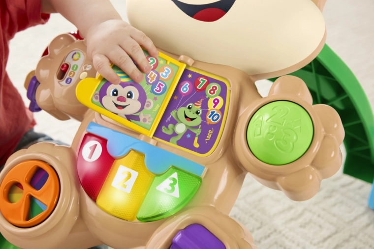 La technologie Smart Stages propose plusieurs niveaux d’apprentissage – des mots et sons simples jusqu’à l’alphabet (ABC), les chiffres (123), les couleurs et les formes, y compris des mots anglais de base. Les enfants exercent leur logique et comprennent le principe de cause à effet en appuyant sur les boutons, en tournant les roues ou en faisant avancer le trotteur.