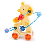 Girafe en bois sur roulettes avec labyrinthe de perles