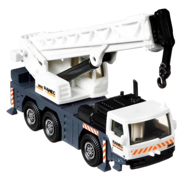- Le set comprend les véhicules suivants de la collection Matchbox Working Rigs : GMC 3500 Attenuator Truck, MBX Mobile Crane, Road Grader et Cement King.
