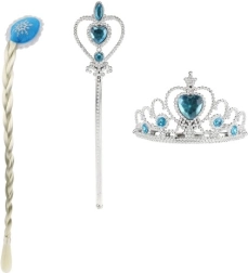 Ensemble de beauté avec le thème de la Princesse des Glaces qui offre à toutes les petites coquettes la possibilité de devenir une véritable princesse. Comprend une magnifique couronne, un élégant sceptre et une tresse à cheveux stylée, l'accessoire idéal pour toutes les occasions.