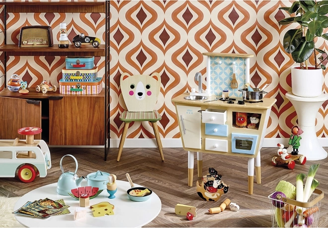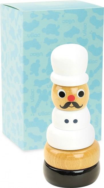 Cette élégante tour à empiler « cuisinier » de la marque VILAC allie esthétique et valeur éducative. Les enfants empilent les éléments en bois sur une tige, entraînant ainsi leur motricité fine, leur logique et leur patience. Le style rétro imaginé par l’illustratrice suédoise Ingela P. Arrhenius en fait également un bel objet décoratif.