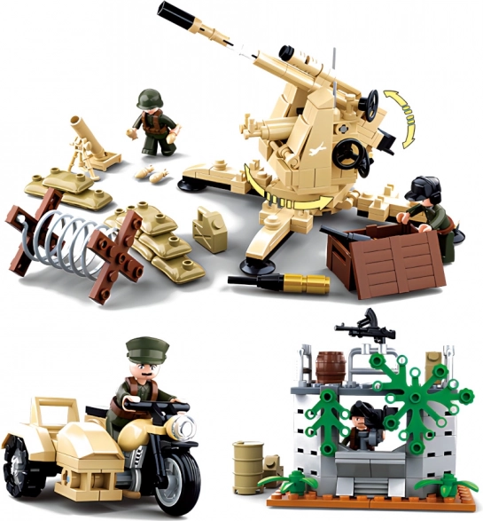 Assemblez un canon antiaérien et partez en action sur une moto avec side-car. Un complément idéal pour des scènes dynamiques et une tactique d’équipe.