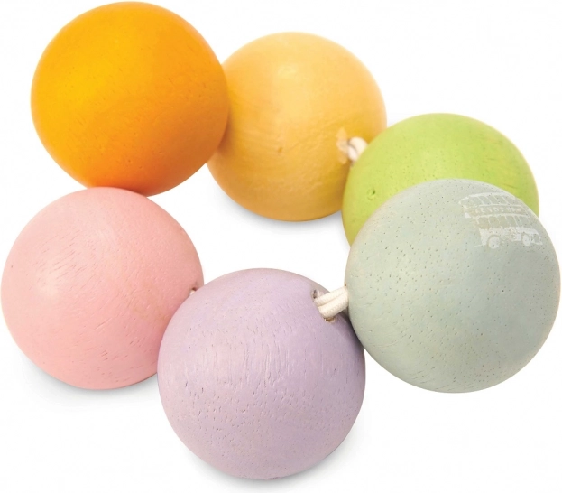 Des billes en bois pastel sur un élastique se tiennent agréablement en main et aident à soulager les gencives sensibles lors des poussées dentaires.