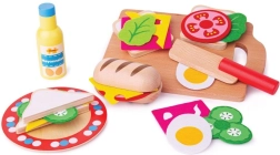 Le coffret contient tout le nécessaire pour préparer un délicieux sandwich : une baguette, des tranches de pain, de la mayonnaise, de la salade, du concombre, du fromage, un œuf et une tomate, complétés par une assiette, une planche et un couteau. Les matériaux proviennent de sources responsables et le jouet répond aux normes de sécurité européennes, pour une utilisation en toute confiance.