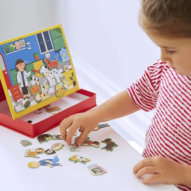 Vous cherchez le jouet parfait pour les petits amoureux des animaux ? Jeu magnétique : Clinique vétérinaire est un choix idéal ! Ce jeu comprend deux tableaux magnétiques et 50 pièces magnétiques, permettant aux enfants de créer leurs propres histoires et scènes. La boîte pliante pratique facilite le rangement et le nettoyage rapide des pièces.