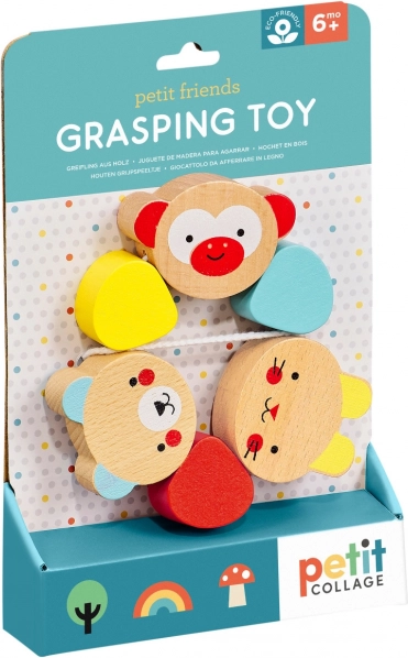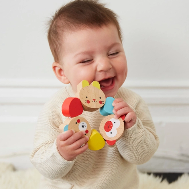 Cet adorable anneau de dentition est idéal pour les petits explorateurs qui commencent à découvrir le monde qui les entoure. Il comprend six pièces en bois robuste, dont trois motifs d’animaux et trois formes colorées, reliées par une cordelette solide.