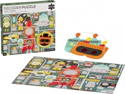 Entrez dans le monde des robots et de leur usine ! Assemblez le puzzle de 100 pièces et, à l’aide du masque décodeur spécial, découvrez les détails cachés nécessaires pour terminer le vaisseau spatial. Cet accessoire ingénieux transforme l’assemblage en un jeu interactif qui développe la logique, l’observation et la motricité fine.