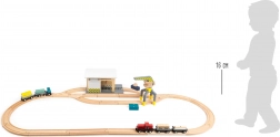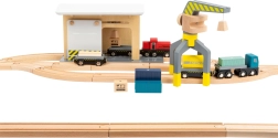 Découvrez un ensemble complet en bois pour petite voie ferrée, entièrement compatible avec les circuits de trains en bois courants. Les enfants apprécieront le chargement réaliste avec la grue, le transport de marchandises et le jeu au dépôt. Le set comprend jusqu’à 44 pièces, dont 25 rails, une grue rotative à 360°, des wagons et cargaisons magnétiques et une paroi coulissante avec poulie. Fabriqué en bois 100 % FSC pour un jeu sûr et durable.