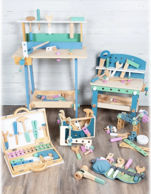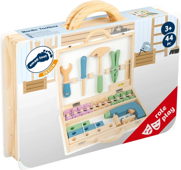 La mallette en bois avec outils pour enfants Nordic offre d’innombrables possibilités de développer dextérité et créativité. Les enfants peuvent assembler diverses constructions grâce aux nombreuses pièces colorées et aux vis et écrous robustes. La mallette est solide et résistante, équipée de bandes élastiques pour maintenir les outils en toute sécurité.