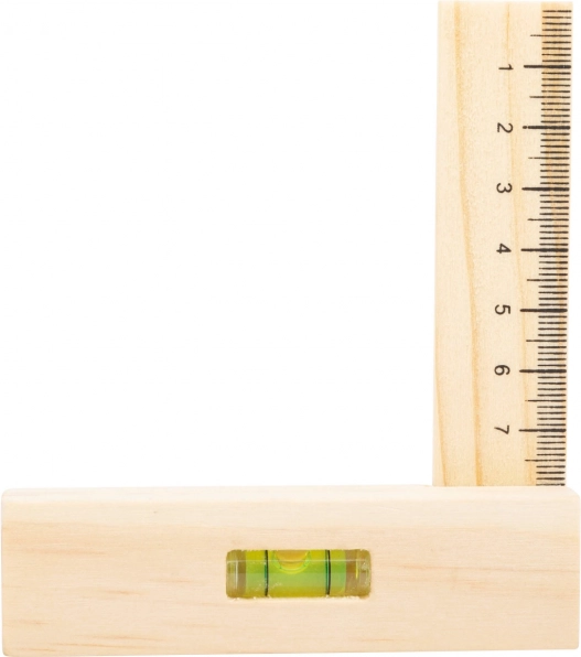 Comprend une équerre avec niveau à bulle, une clé, un tournevis, un marteau, une pince et une perceuse avec 3 embouts.