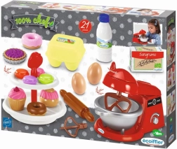 Découvrez le monde créatif de la pâtisserie avec cet ensemble pour enfants, comprenant un robot de cuisine à fonction mécanique, 2 fouets/embouts mélangeurs, un bol mélangeur et un présentoir à pâtisseries. Sont inclus des œufs, un rouleau à pâtisserie et une sélection de desserts comme des macarons, des tartelettes, des muffins et des beignets. Au total, 21 accessoires pour des heures de jeu et de développement de l’imagination.