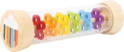 Découvrez le doux son de la pluie avec ce bâton de pluie de qualité de Small Foot. Le corps transparent permet aux enfants d’observer les billes colorées et les obstacles en forme de fleurs qui, en mouvement, produisent un son apaisant. Idéal comme jouet sensoriel, hochet et instrument rythmique pour développer l’ouïe et la vue.