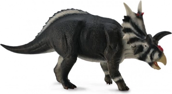 La figurine Xenoceratops de la marque CollectA est fabriquée en plastique résistant, offrant un rendu réaliste grâce à un modelage soigné et à une peinture manuelle. Elle met en valeur des caractéristiques distinctives, telles que des cornes proéminentes et une peau écailleuse, ce qui en fait un choix idéal pour des fins éducatives, le jeu ou comme décoration pour la chambre d'enfant.