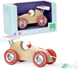 Voiture de course en bois à tirer avec aile rouge VILAC