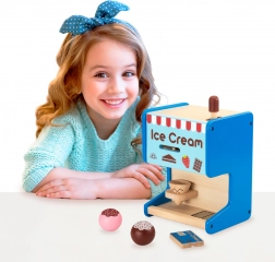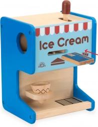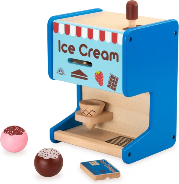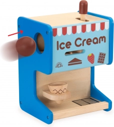 Jouet mécanique en bois, permettant aux enfants d'apprendre le comportement social. Les boules représentant les boules de glace sont placées dans le réservoir de la machine à glace, après paiement (en introduisant la carte fournie) et en tirant sur le levier, une boule de glace atterrit dans le cornet préparé. Sera-t-elle à la fraise ou au chocolat? Le jouet offre une construction en bois durable, des formes douces et une combinaison de couleurs vives avec la teinte apaisante du bois naturel. Il se distingue également comme complément à la Machine à café en bois Wonderworld. Principales caractéristiques: machine à glace, carte, 2 boules et cornetmécanique ingénieuseconstruction robuste en bois