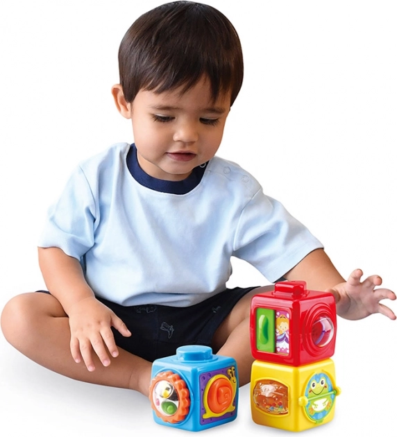 Nos cubes interactifs sont idéaux pour les enfants qui commencent à découvrir le monde qui les entoure. Ils sont fabriqués à partir de matériaux plastiques sûrs assurant résistance et longévité. Chaque cube propose des éléments interactifs uniques qui stimulent le toucher et la vue.