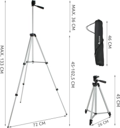 Le trépied est idéal pour la photo et la vidéographie avec un appareil photo, un téléphone ou une caméra numérique. Il dispose d’un filetage universel 1/4" et d’un support compatible pour divers appareils. Pratique et léger, il est facile à transporter, ce qui en fait un compagnon idéal en voyage.