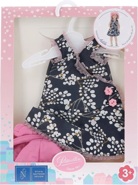Tenue pour poupée 44 cm – robe à fleurs et petit chapeau rose PETITCOLLIN