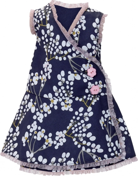 La tenue est conçue pour les poupées de 44 cm, notamment la gamme Starlette. L’association d’une petite robe bleu marine à motif floral et d’un chapeau rose crée un ensemble charmant, confortable et très photogénique. La couture soignée et l’attention aux détails reflètent la longue tradition de qualité de la marque PETITCOLLIN.
