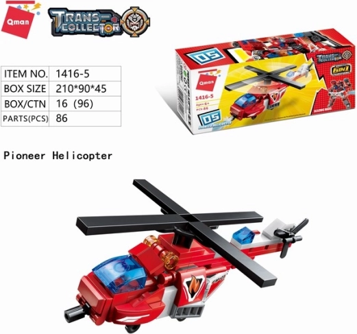 - 6 modèles en 1 – véhicules, hélicoptère et possibilité d’assembler un grand mécha.