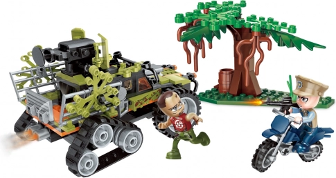 La boîte de construction d’action QMAN de la série Police Battle Force propose une chasse au braconnier dans la jungle avec un lance-filet fonctionnel, des véhicules tout-terrain et 2 figurines. L’ensemble contient 227 pièces en plastique ABS résistant, compatibles avec LEGO et d’autres marques.