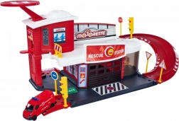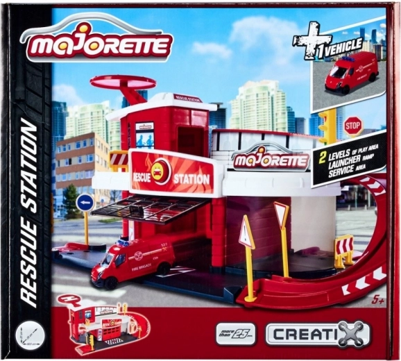 La station de secours Majorette Creatix est le meilleur complément à toute collection de jeux. La station dispose de deux niveaux pour différents scénarios de jeu, y compris un hélipad et une rampe de lancement pour les petites voitures. Les enfants peuvent jouer à des scénarios de sauvetage réalistes grâce aux panneaux de signalisation inclus et à d'autres accessoires.