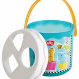 Le seau avec couvercle comporte trois ouvertures différentes pour insérer les pièces selon leur forme, permettant ainsi aux enfants d’apprendre à reconnaître les formes facilement et de manière ludique.