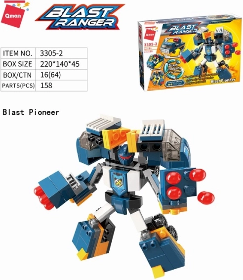 Avec le kit Qman Blast Ranger, les enfants vivent une action digne du cinéma. La voiture performante cache en elle un gardien robotique, prêt à protéger l’équipage. Grâce à une conception ingénieuse, le modèle peut être converti sans démontage, pour un jeu fluide et plus d’histoires.