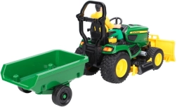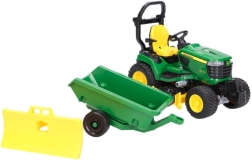 Ensemble réaliste pour petits jardiniers : tracteur de jardin JOHN DEERE X949 avec lame frontale, unité de coupe et remorque basculante. Inclus : figurine articulée pour encore plus de jeu. Plastique ABS de qualité, fabriqué en Allemagne, convient aux enfants dès 4 ans.