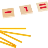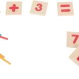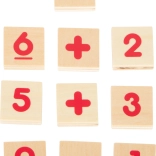 Les plaquettes avec chiffres et symboles rouges soutiennent l’apprentissage du calcul et lient amusement et apprentissage.