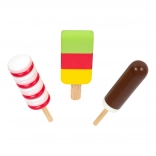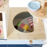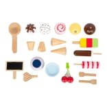 Le set comprend huit parfums de glace différents, dont vanille, chocolat, stracciatella et fraise. Des éléments interactifs, tels que des supports pour cornets, une vitrine en plastique et un congélateur avec couvercle transparent, intensifient encore l’expérience de jeu.