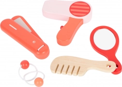 Contient 12 accessoires, y compris un peigne, un miroir, un sèche-cheveux et d'autres outils cosmétiques.