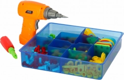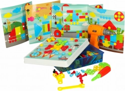 Jeu de construction éducatif et ludique pour petits bricoleurs avec perceuse-jouet électrique, vis et plaque mosaïque. Les enfants entraînent leur motricité fine, leur créativité et leur pensée technique en composant des motifs colorés et leurs propres constructions. La mallette pratique facilite le transport et le riche ensemble de 261 pièces garantit des heures de jeu.