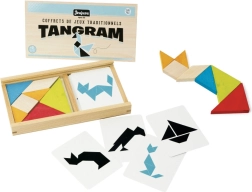 7 pièces de tangram, 30 cartes modèles, boîte en bois