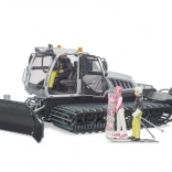 Le modèle possède une lame avant relevable et orientable, un tiller arrière avec rotor et des ailettes extérieures réglables, offrant une expérience authentique de pilotage d’une dameuse.