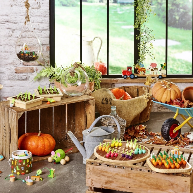 Un socle en bois robuste et des carottes en bois et en feutre garantissent durabilité et beau look naturel, invitant les enfants au jeu.