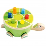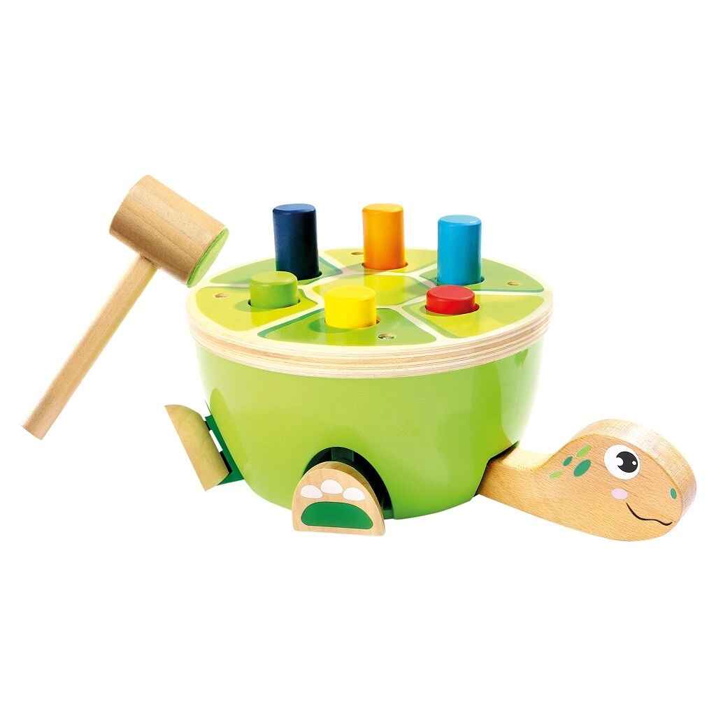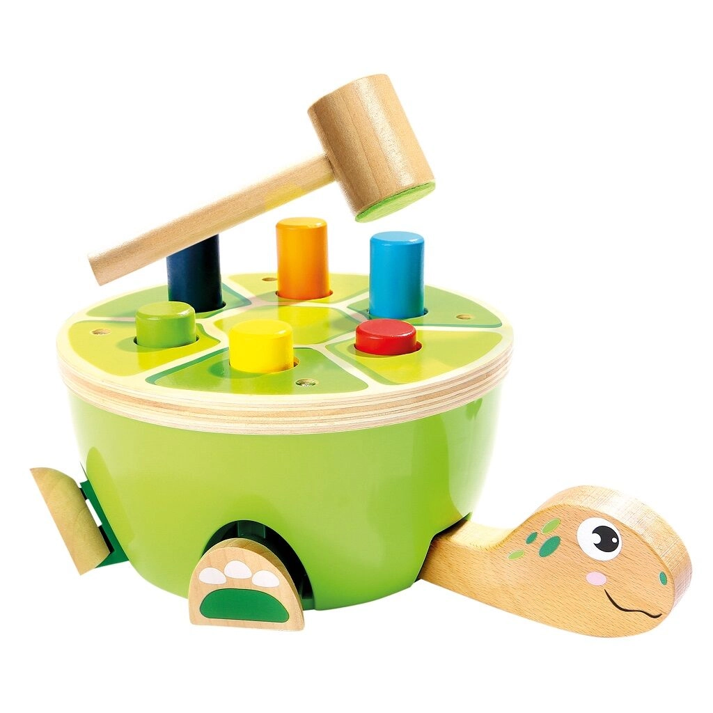 Ce jeu de martelage tortue de Bino est un choix idéal pour les premières activités motrices. Les enfants martèlent en toute sécurité les chevilles colorées dans la carapace à l’aide d’un marteau en bois avec revêtement en feutre doux. Le jeu développe naturellement la motricité fine, la coordination œil–main et la concentration, et grâce à son design joyeux, le jouet retient l’attention pendant longtemps.